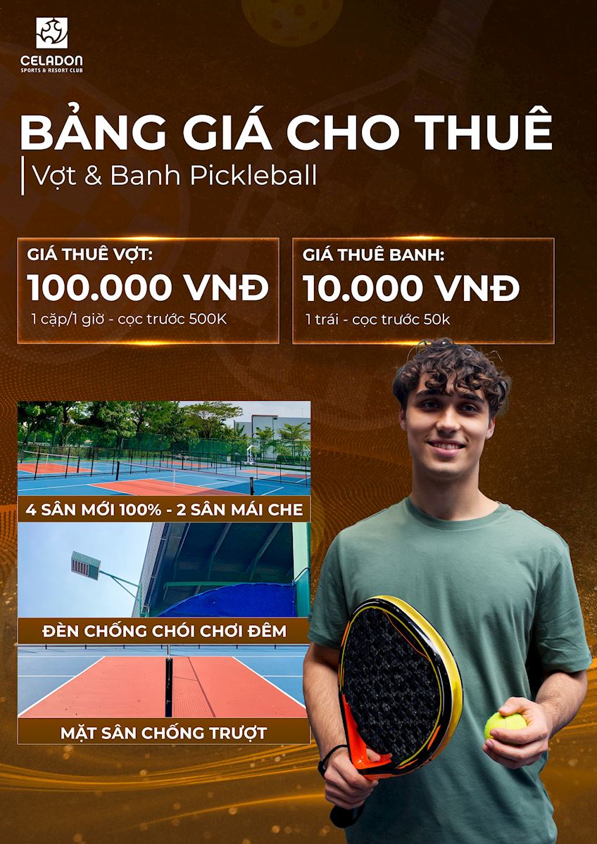 Bảng giá thuê banh và vợt pickleball tại Celadon Sports Club