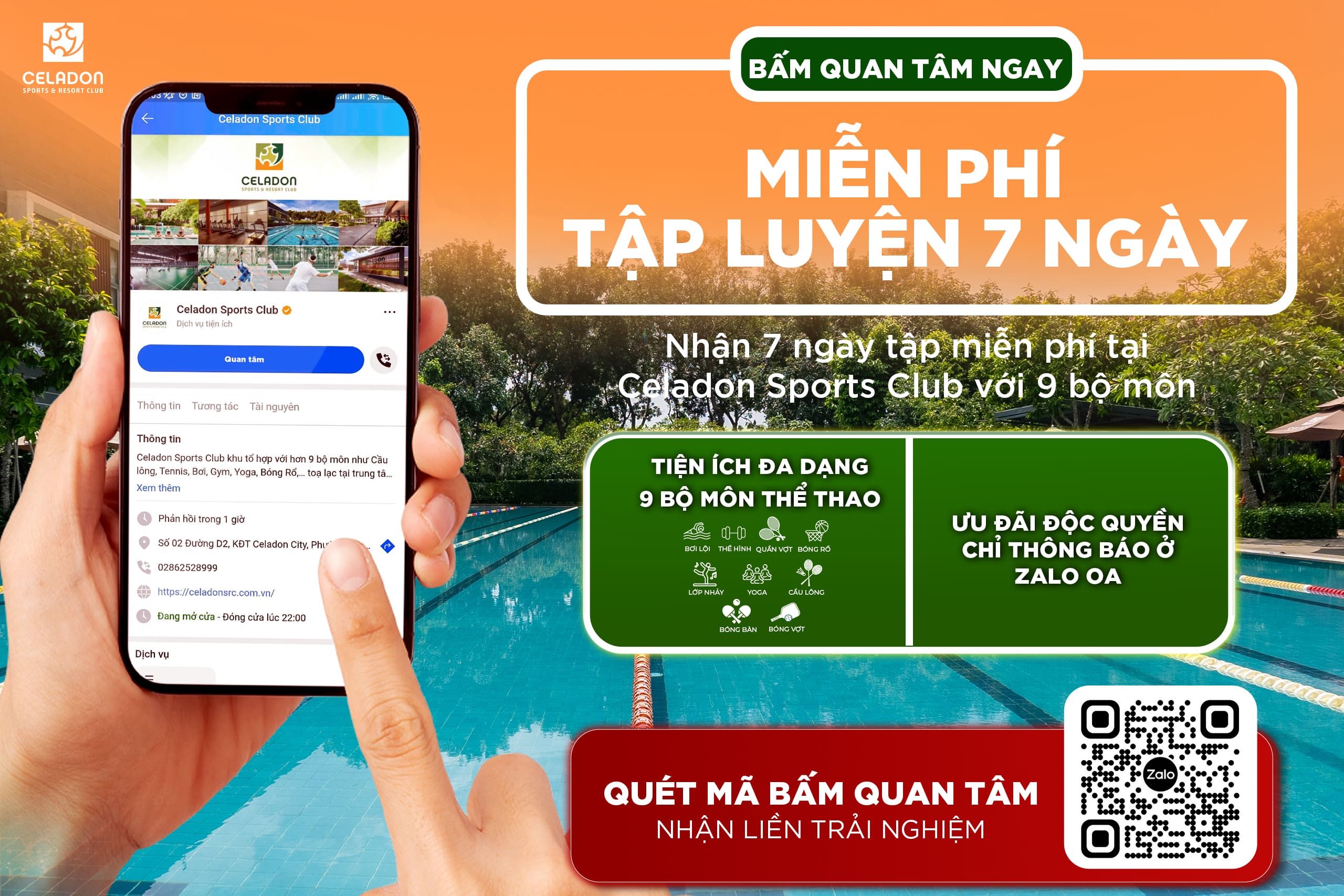 Quan Tâm Zalo OA Nhận Ngay Gói Tập Miễn Phí 7 Ngày Tại Celadon Sports Club